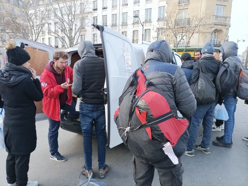 « On le voit souvent depuis une dizaine de jours », confie Astrid, 24 ans, qui vient de rejoindre l’organisation humanitaire. Jus d’orange, quiches lorraines et pâtes aux anchois sont distribués aux autres. Exilés sans-papier, personnes sans-domiciles fixes, retraités démunis… au bout de vingt minutes, tout le monde est servi. Sauf un homme, resté en retrait. Il se tient là, à l’écart, comme pour ne pas déranger. Astrid l’aperçoit, surprise. « Bonjour Trésor, ça va ? »